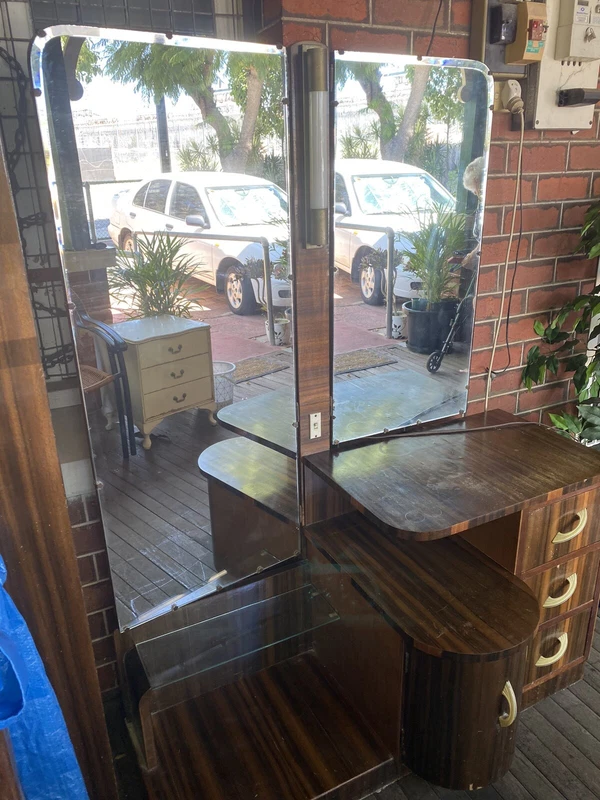 Vintage 1940 S Art Deco Waterfall Bedroom Set Vanity Dresser Bench