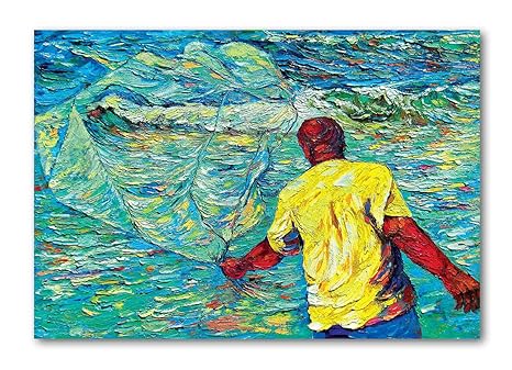 Tamatina Modern Art Canvas Painting A Man At Bank Of The River