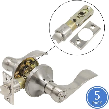 5 Pack Bathroom Door Lock Bedroom Privacy Handles Brushed Nickel