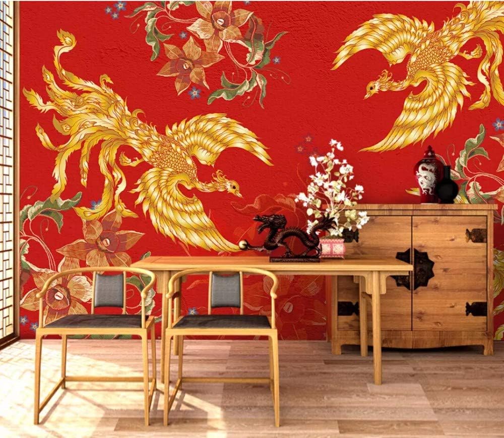3d Wallpaper Tv Wall Decor Sticker Hand Painted Red Phoenix Flower