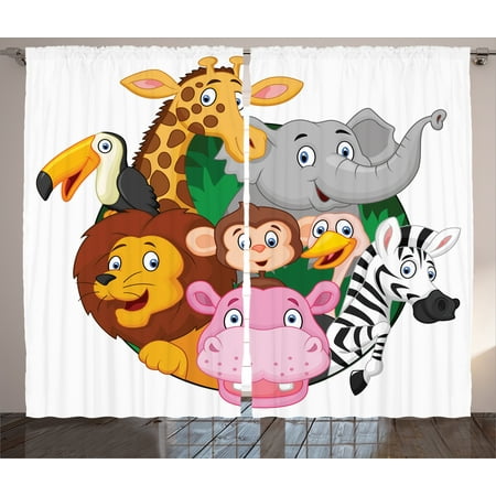 Cartoon Decor Curtains 2 Panels Set Exotic Safari Animals All