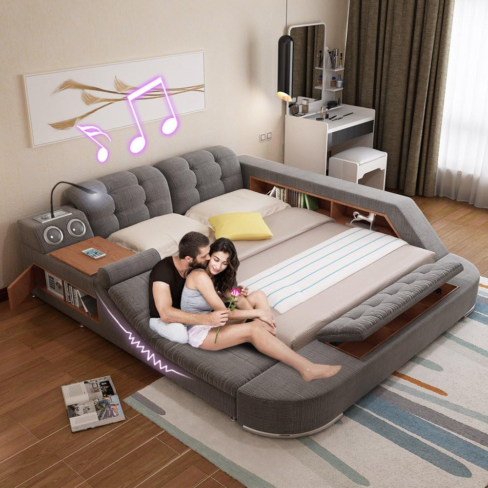 Modern Leather Fabric Bed With Storage Box Function Bedroom