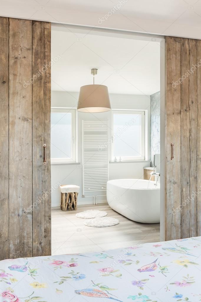 Modern Bedroom With Attached Bathroom Stock Photo C Croese 79346064