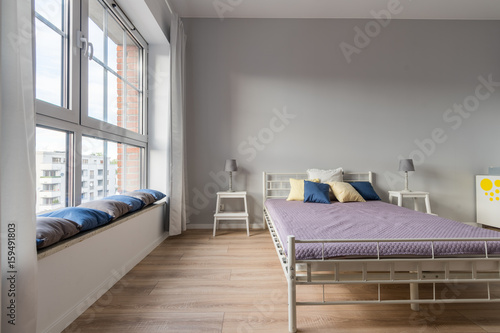 Minimalistic Modern Bedroom With Nice Big Window Buy This Stock