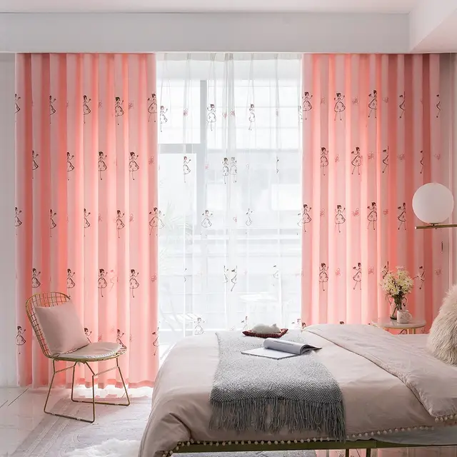 Embroidery Butterfly Blackout Curtains For Baby Girls Bedroom Pink
