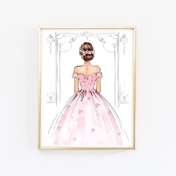 Romantic Wall Art Watercolor Fashion Illustration Pink Rose Etsy
