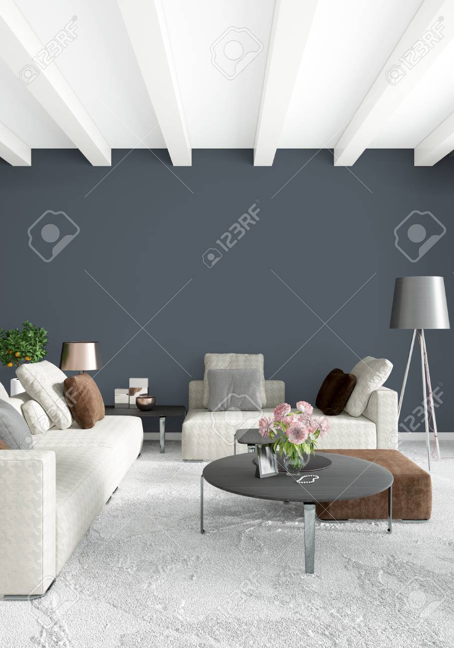 Stylish And Modern Interior Of Living Room With Small Design Table