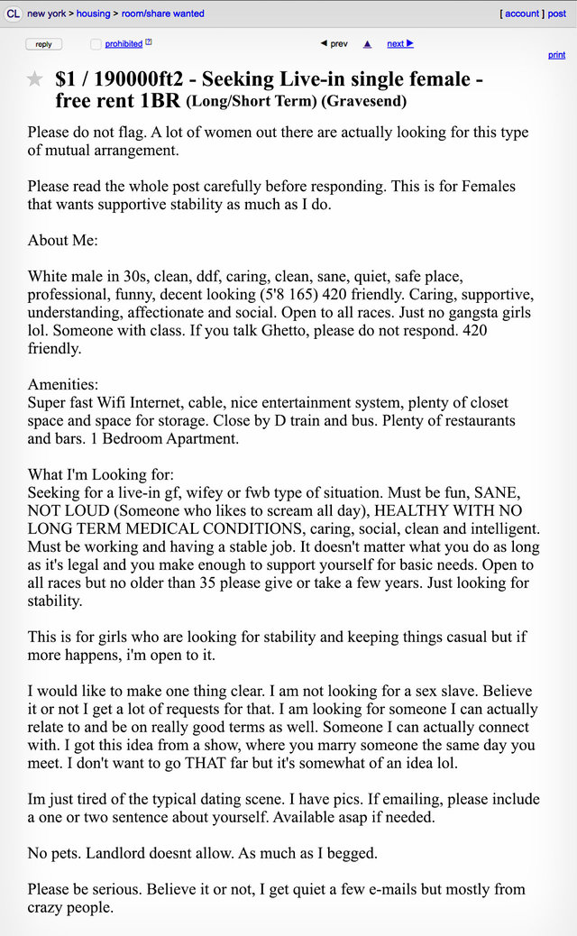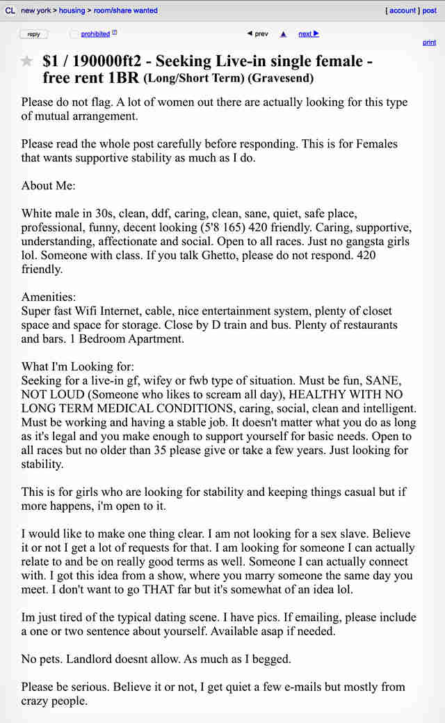 The Weirdest New York Roommate Ads On Craigslist Thrillist