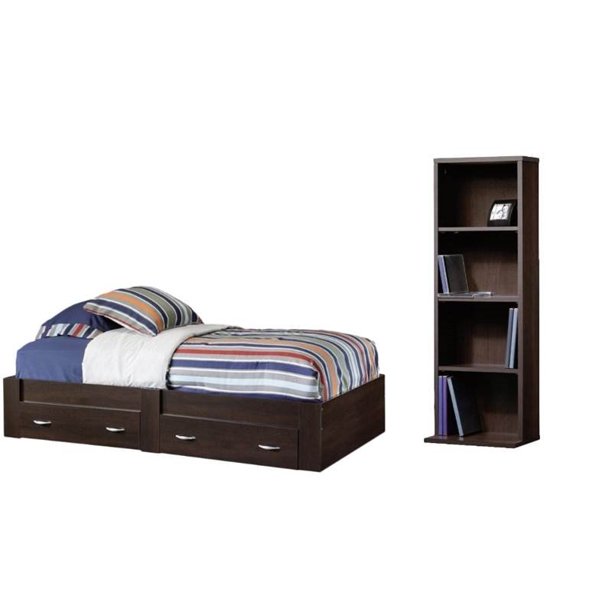 2 Piece Kids Bedroom Set With Twin Platform Bed And Bookcase In