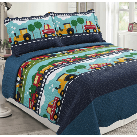 Golden Linens Full Size3 Pieces 1 Quilt 2 Shams Navy Blue Aqua