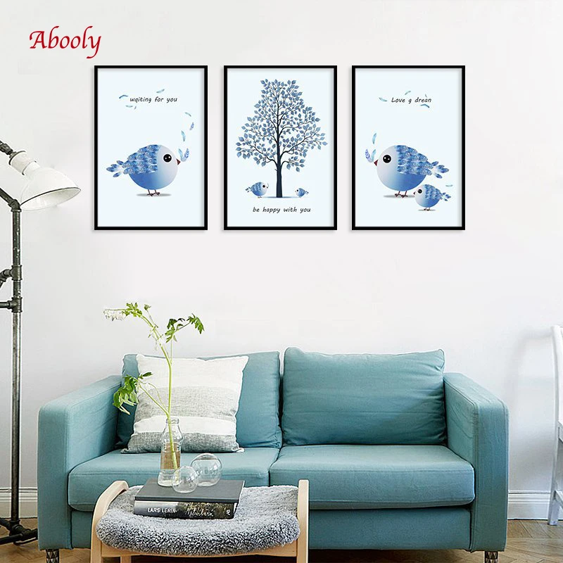 Nordic Poster Fresh And Simple Blue Love Bird Tree Canvas Painting