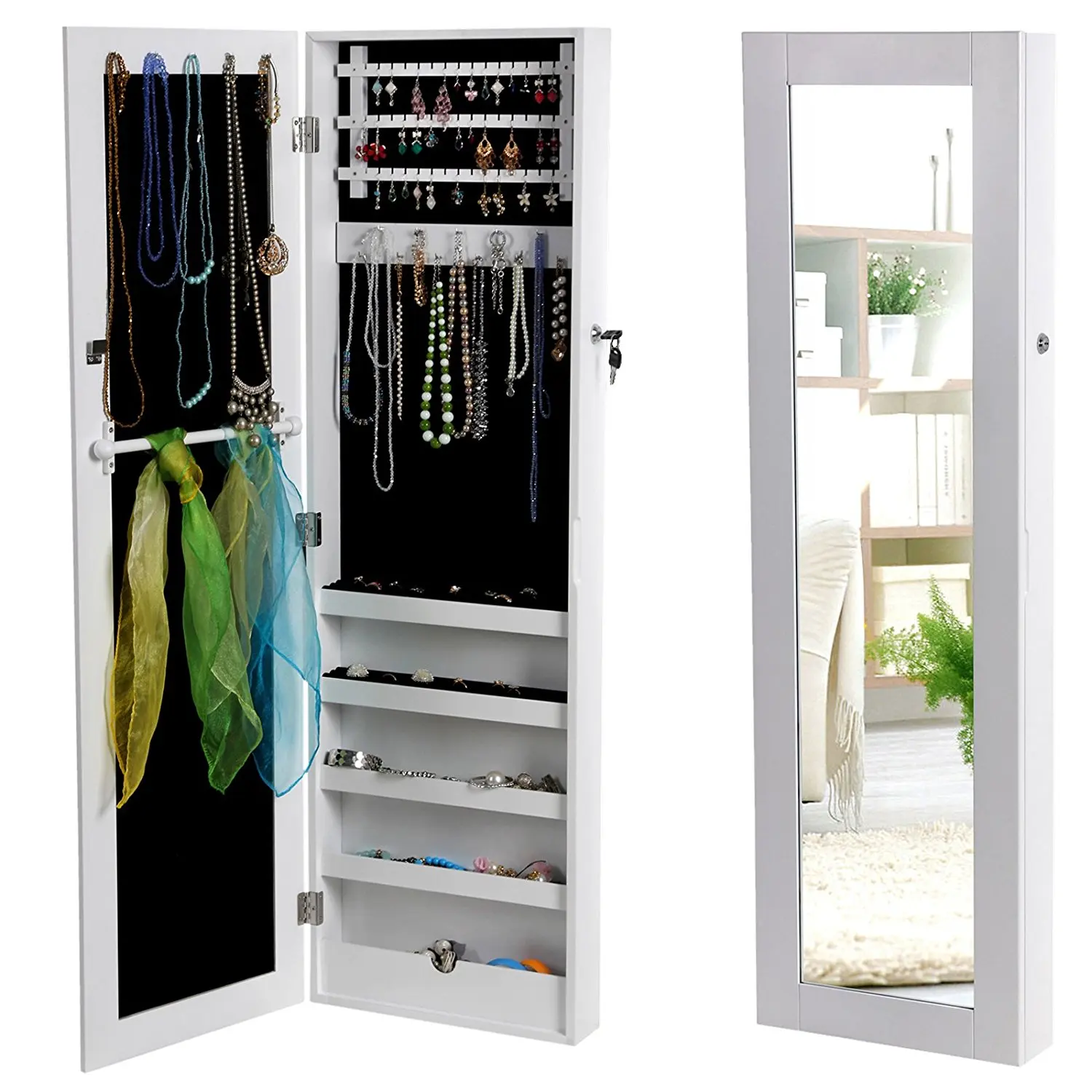 Wall Mount Jewelry Storage With Full Length Mirror Door