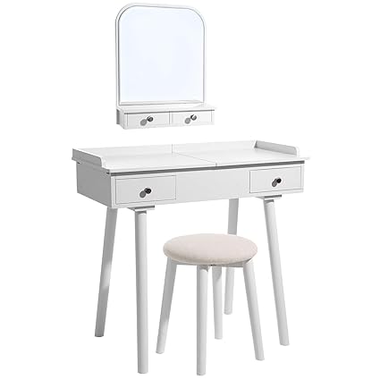 Songmics Modern Dressing Table With Wall Mounted Mirror Pull Out