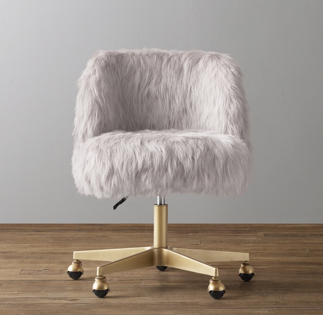 Alessa Kashmir Faux Fur Desk Chair Pewter