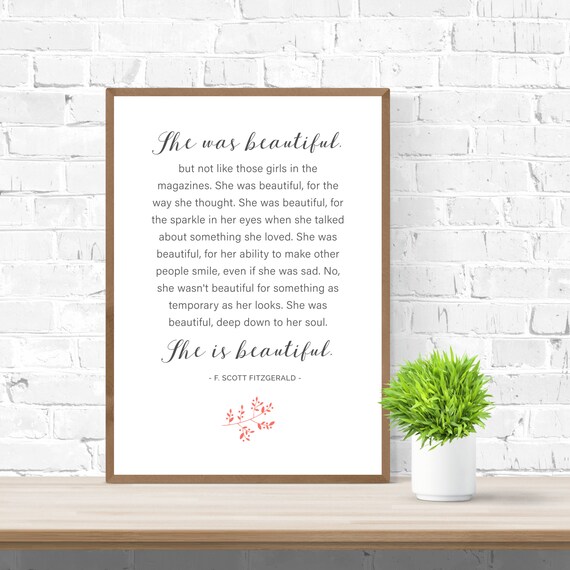 She Was Beautiful Print Quote F Scott Fitzgerald Quote Etsy